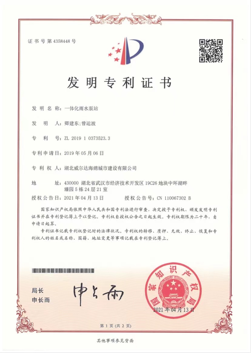 一體化雨水泵站發(fā)明專利