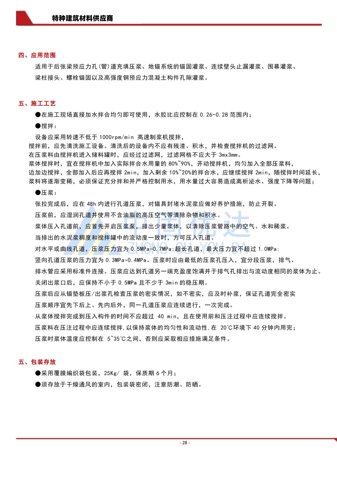 壓漿料/預(yù)應(yīng)力孔道壓漿料